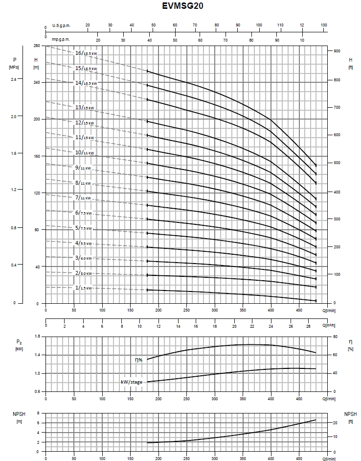 - Maksymalna wysokość podnoszenia typoszeregu: 160 m