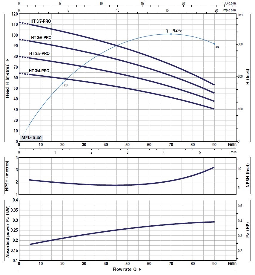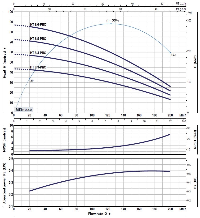 Pompa Pedrollo HT-PRO to urządzenie wielostopniowe, wykonane z wirnika ze stali nierdzewnej AISI 304. Normalnie ssąca pompa pozioma, przeznaczona jest przede wszystkim do instalacji podnoszenia ciśnienia.