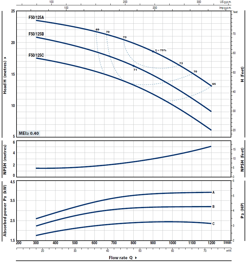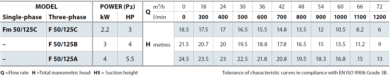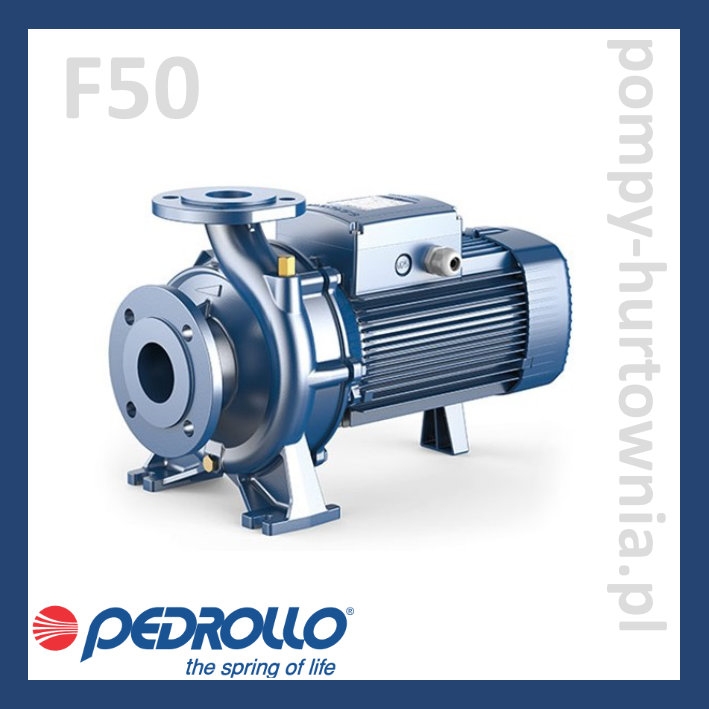 Pompa powierzchniowa Pedrollo F50 to urządzenie jednostopniowe, normalnie ssące. Zostało wykonane wg. normy "EN 733" dla pomp odśrodkowych z wlotem osiowym.