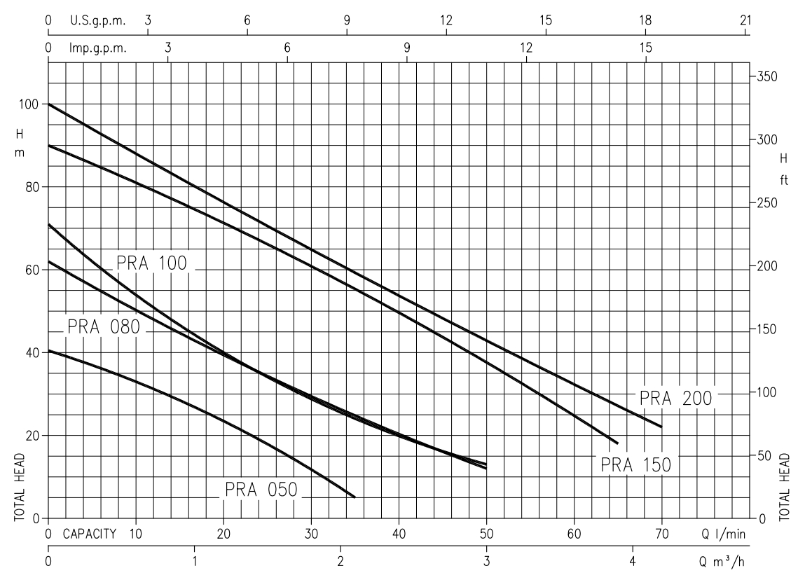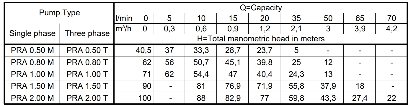 - Maksymalna wysokość podnoszenia typoszeregu: 100 m