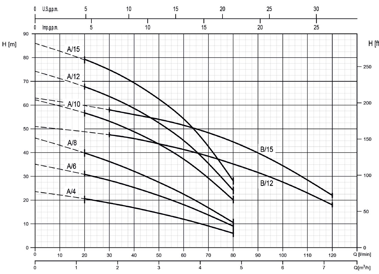 - Wydajność maksymalna typoszeregu: 120 L/min (7,2 m3/h)