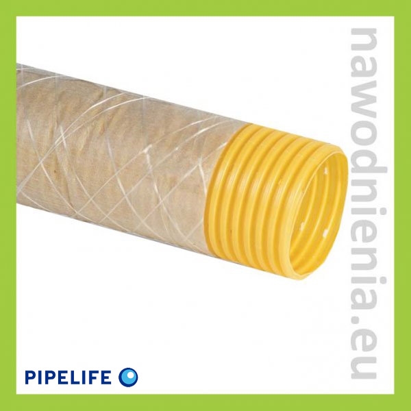 Rura drenarska w otulinie z geowłókninie odpowiednia do budowy systemu odwodnienia niezależnie od struktury oraz rodzaju gruntu. Rura perforowana.